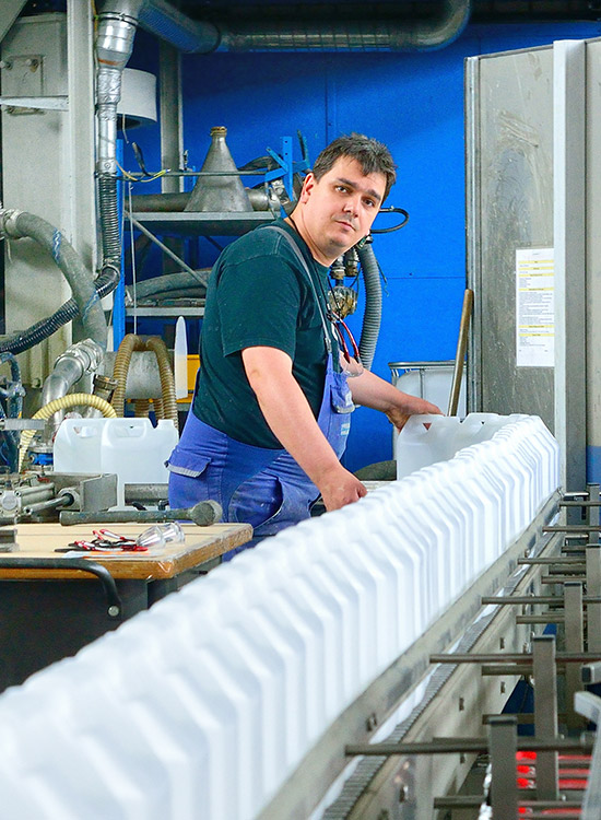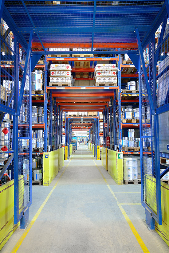 Based on the consistent safety system, production processes take place based on the principle to minimise risk at all times. A comprehensive environmental and occupational safety management system has been implemented to achieve this objective. We have installed effective fire compartmentation, fire alarm systems, extinguishing water capacities, regular drills and safety training, safety officers, production monitoring systems, room sensor systems, ergonomic work aids, tank filling using the gas displacement method, solvent distillation and much more stand to achieve our high occupational safety and environmental standards.